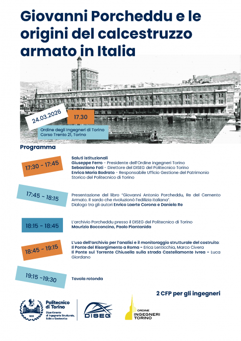 Incontro dedicato alla figura di Giovanni Antonio Porcheddu, protagonista della diffusione del calcestruzzo armato in Italia e attore chiave nello sviluppo dell’ingegneria strutturale del primo Novecento.