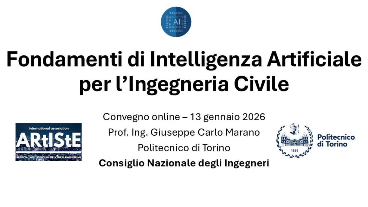 Il Dipartimento di Ingegneria Strutturale, Edile e Geotecnica (DISEG) del Politecnico di Torino, attraverso le attività di ricerca e divulgazione del Prof. Giuseppe Carlo Marano, continua a sviluppare in modo sistematico e scientificamente fondato le tematiche legate all’Intelligenza Artificiale applicata all’ingegneria civile, rafforzando la propria visibilità nazionale e internazionale mediante eventi e conferenze di grande rilevanza.